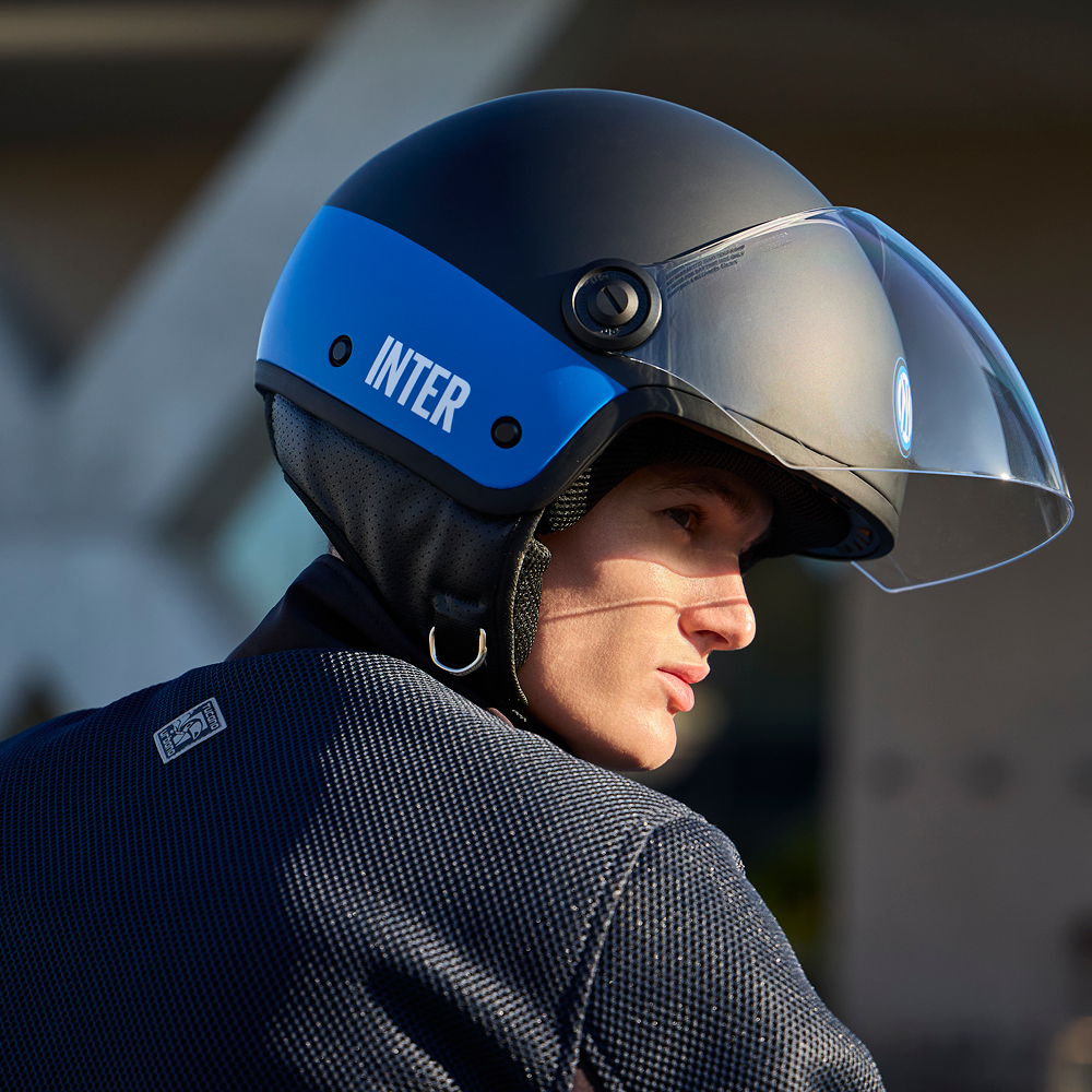 Per la brandizzazione interista è stato scelto EL’JETTIN, il bestseller della gamma demi-jet TUCANO URBANO, in quanto campione di design, ricercatezza nei colori, comfort e prezzo: 99,00€. Due le varianti con grafica personalizzata proposte entrambe nelle taglie XS/2XL: